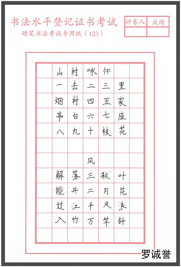 ★ 硬笔书法作品一级